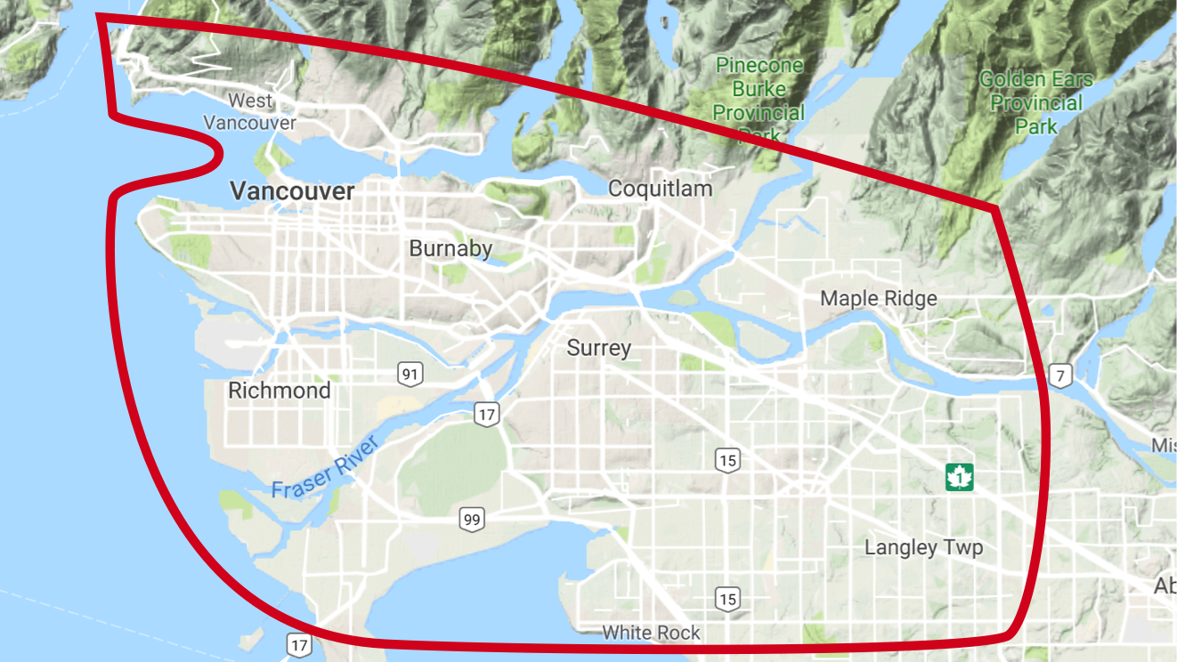 We deliver to all cities within the Greater Vancouver area. This includes: Vancouver, North